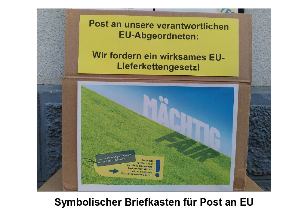 "Seit Januar 2023 ist das deutsche Lieferkettengesetz in Kraft. Es verpflichtet Unternehmen, Menschenrechte in ihren Lieferketten zu schützen. Ein Lieferkettengesetz auf der Ebene der Europäischen Union bietet die Chance, noch bestehende Lücken zu schließen und Wettbewerbsgleichheit für alle Mitgliedsstaaten zu schaffen. Nachdem die EU-Kommission und der Europäische Rat ihre Vorschläge für ein EU-Lieferkettengesetz im vergangenen Jahr veröffentlicht haben, wird im Mai das EU-Parlament seinen Vorschlag unterbreiten. Aktuell laufen hierzu die Verhandlungen. Danach kommt es zum Trilog: In diesem wollen der Rat, die Kommission und das Parlament noch vor der Europawahl im Mai 2024 zu einer Einigung kommen. Daher ist jetzt – auch aufgrund des wachsenden Lobby-Drucks der Wirtschaftsverbände – der richtige Zeitpunkt noch einmal klar zu machen: Es braucht ein starkes, wirksames europäisches Lieferkettengesetz"
