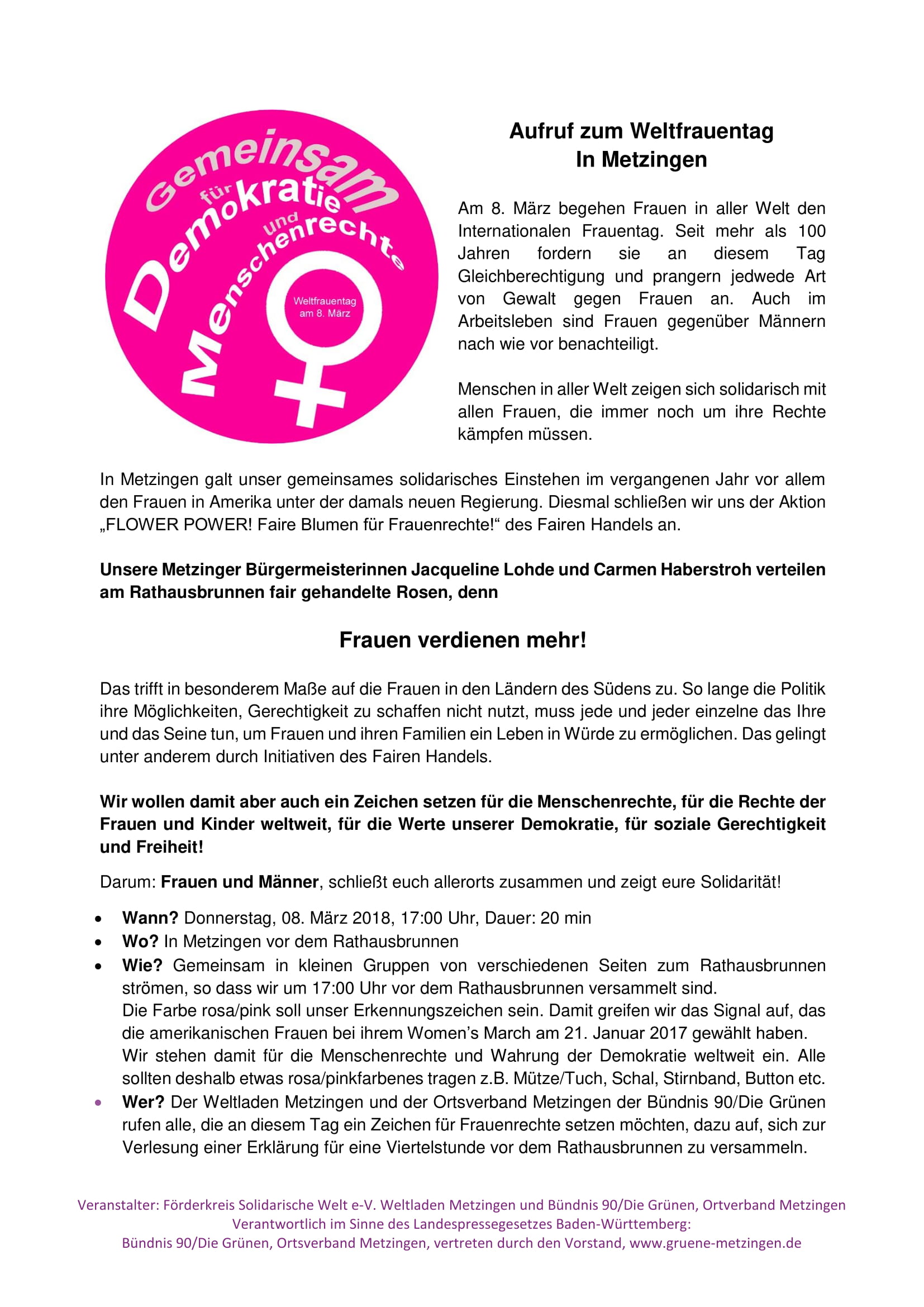 Der Weltladentag ist der politische Aktionstag der Weltläden und findet jedes Jahr statt. Als Fachgeschäfte für Fairen Handel tragen Weltläden zu mehr Gerechtigkeit im Handel mit den Ländern des Südens bei und setzen sich für bessere Lebens- und Arbeitsbedingungen von Kleinbäuerinnen und -produzentinnen ein.